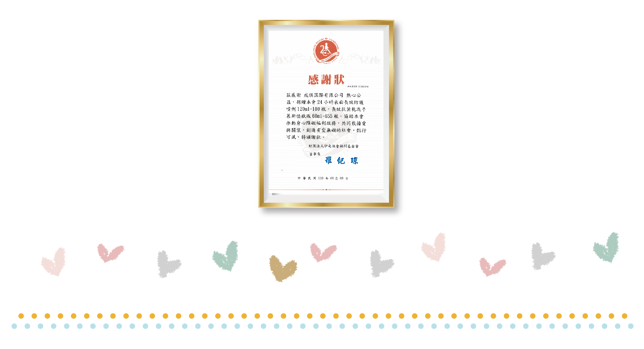 我們立即捐贈將近萬瓶的「思必兒Spear&Armour長效抗菌噴劑」
