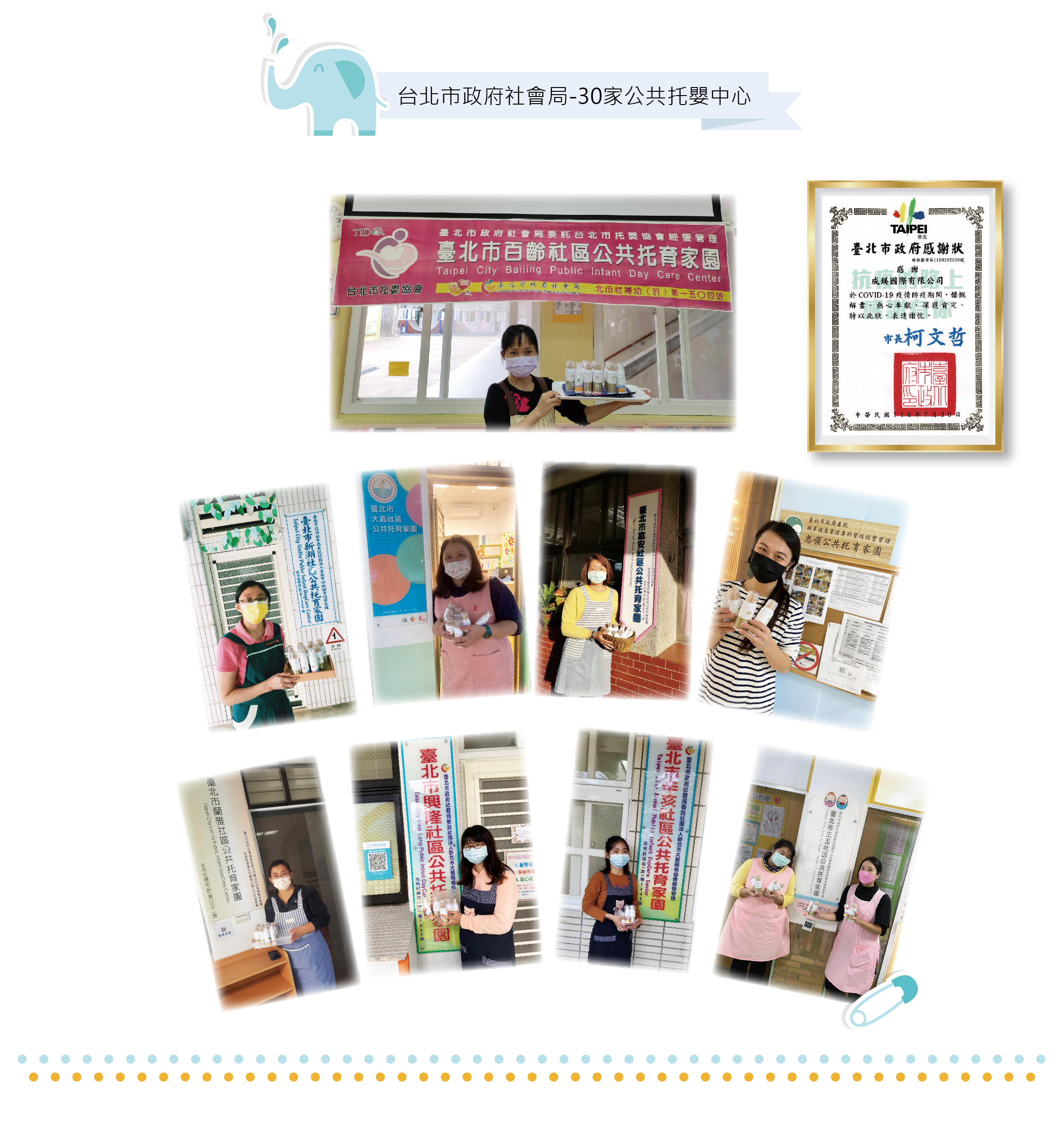 士林托嬰中心、大同托嬰中心、大安托嬰中心、文山托嬰中心、內湖托嬰中心、北投托嬰中心、西湖托嬰中心、松山托嬰中心、南港托嬰中心、健康托嬰中心、景美托嬰中心、萬華托嬰中心、興隆托嬰中心、關渡托嬰中心、三玉社區公共托育家園、大直社區公共托育家園、文湖社區公共托育家園、北安社區公共托育家園、永樂社區公共托育家園、成功社區公共托育家園、百齡社區公共托育家園、辛亥社區公共托育家園、忠順公共托育家園、富安社區公共托育家園、新湖社區公共托育家園、萬隆社區公共托育家園、萬福社區公共托育家園、興隆社區公共托育家園、舊莊社區公共托育家園、蘭雅社區公共托育家園,