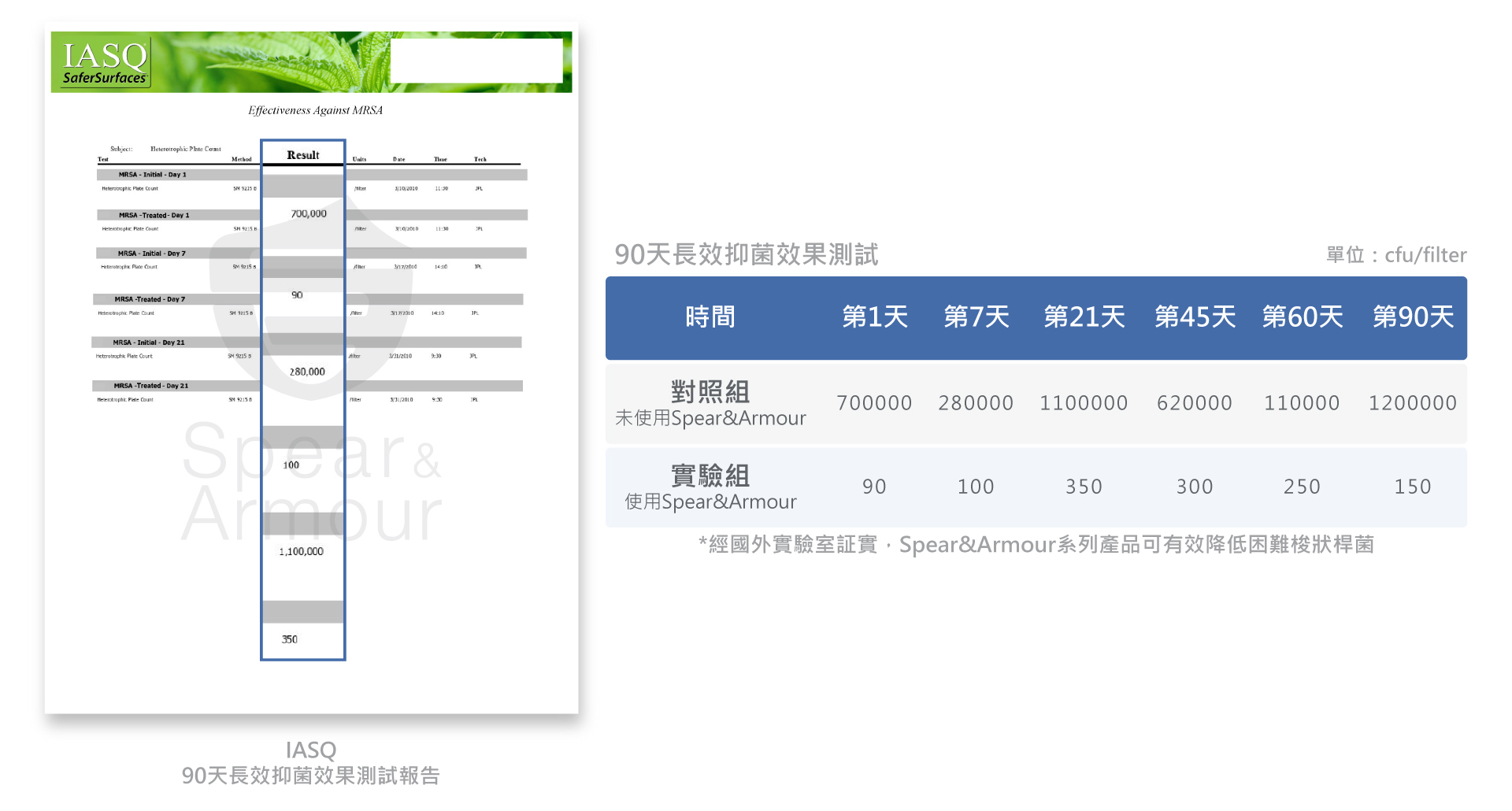 “ Spear & Armour 思必兒系列產品可有效減少抗藥性金黃色葡萄球菌(MRSA)長達90天 ”