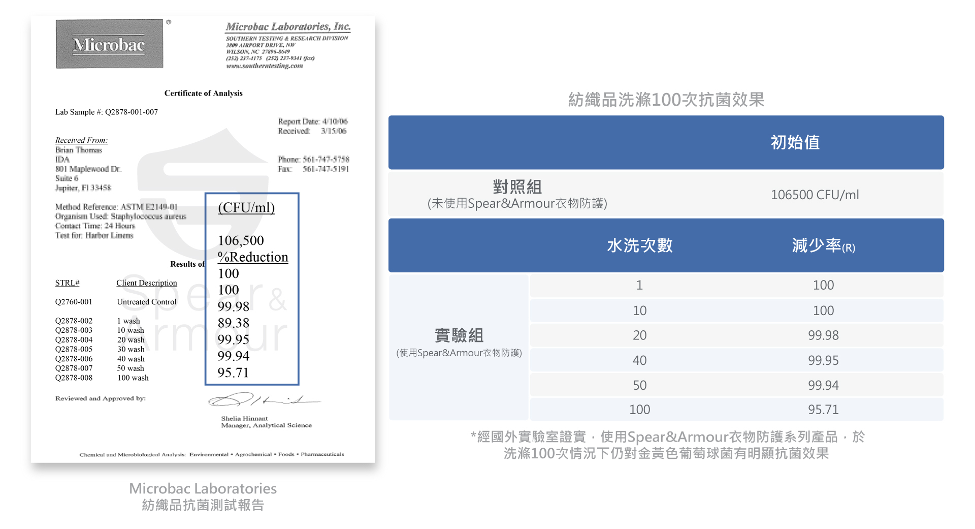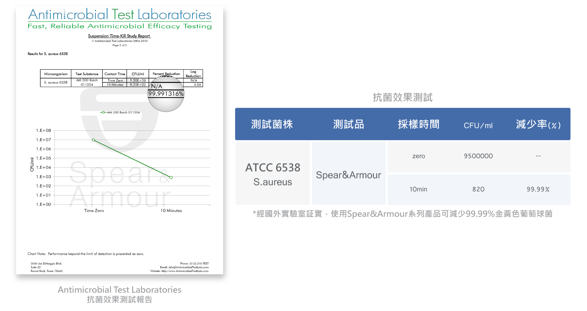 “ Spear & Armour 思必兒系列產品可有效減少99.99%金黃色葡萄球菌(S.aureus) ”