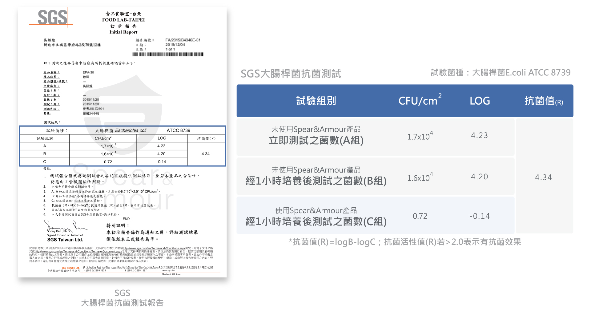“ Spear & Armour 思必兒系列產品對大腸桿菌有抗菌效果 ”