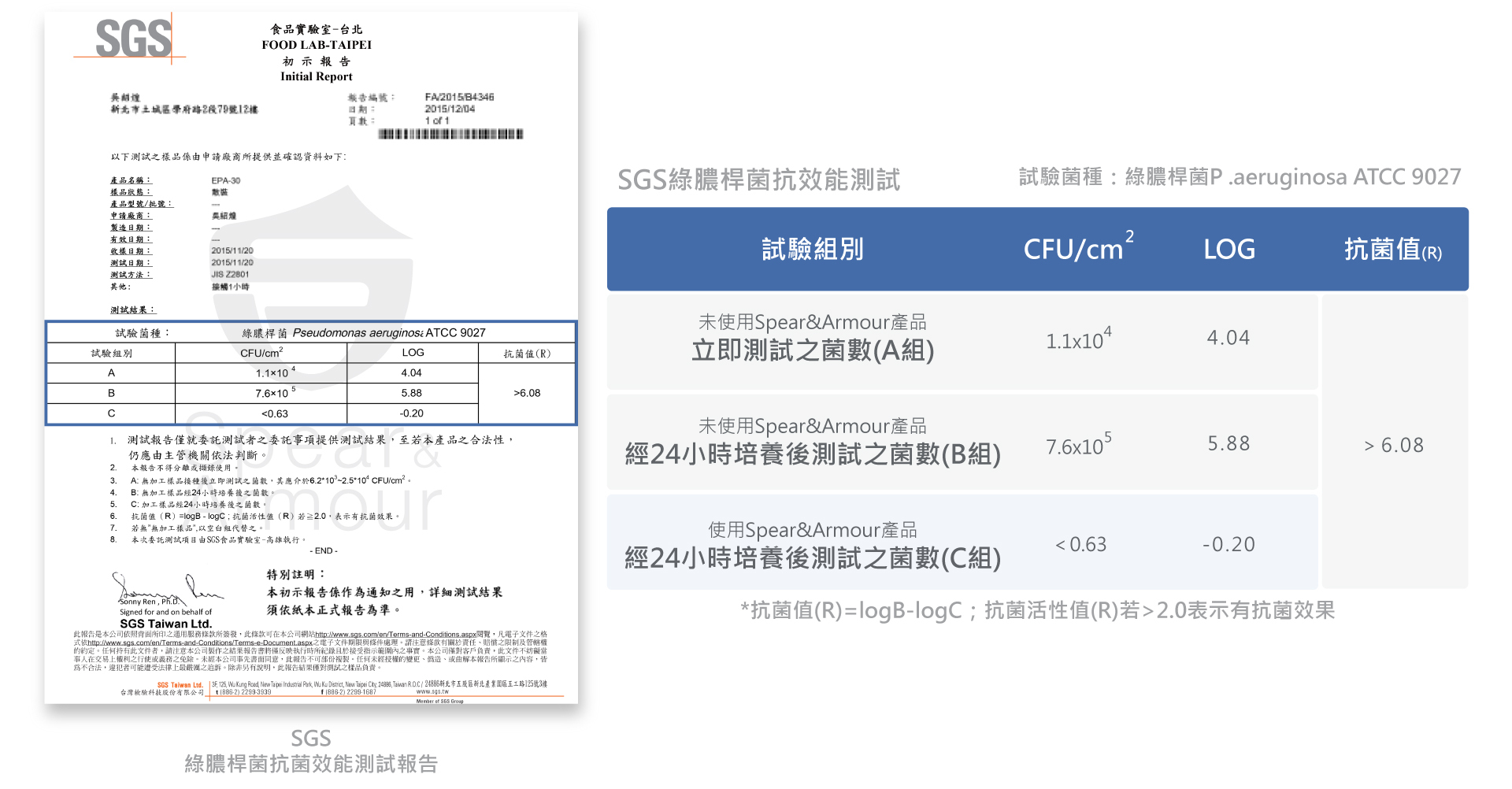 “ Spear & Armour 思必兒系列產品對綠膿桿菌有抗菌效果 ”