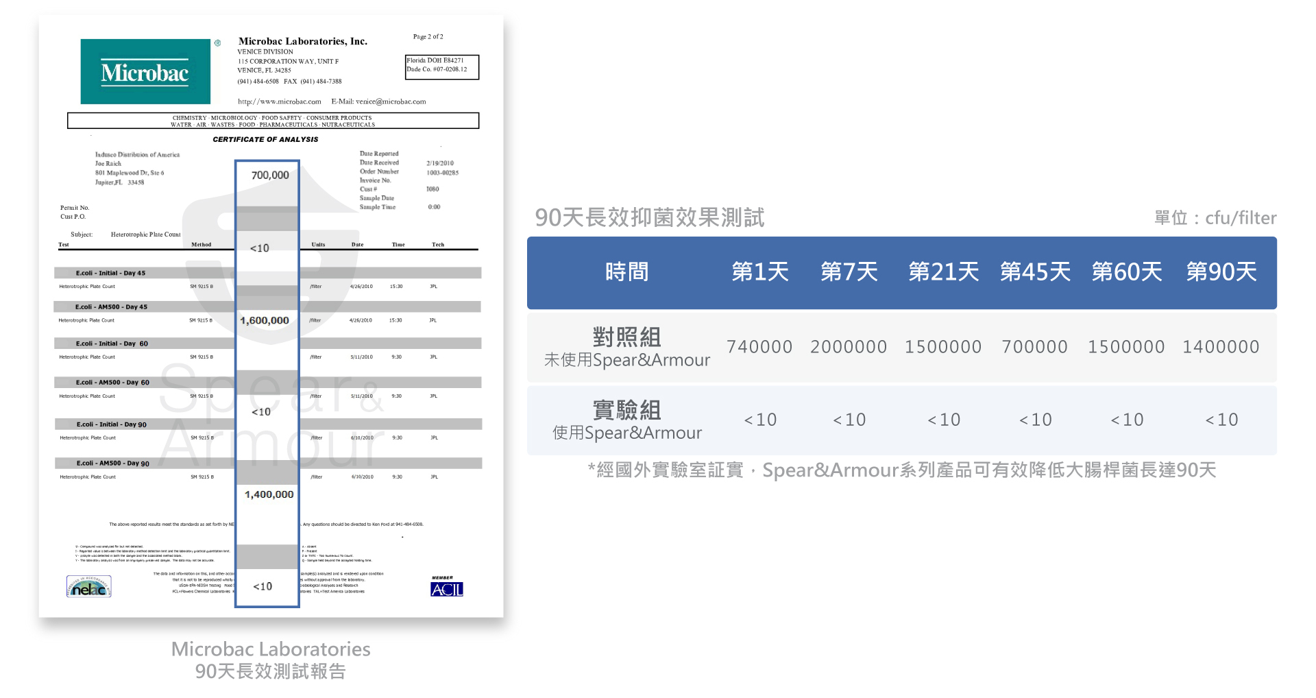 “ Spear & Armour 思必兒系列產品可有效減少大腸桿菌(E.coli)長達90天 ”