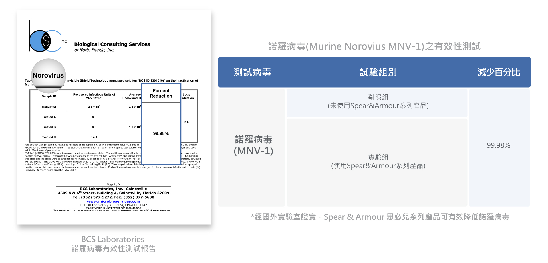 “ Spear & Armour 思必兒系列產品可降低諾羅病毒感染之可能性 ”