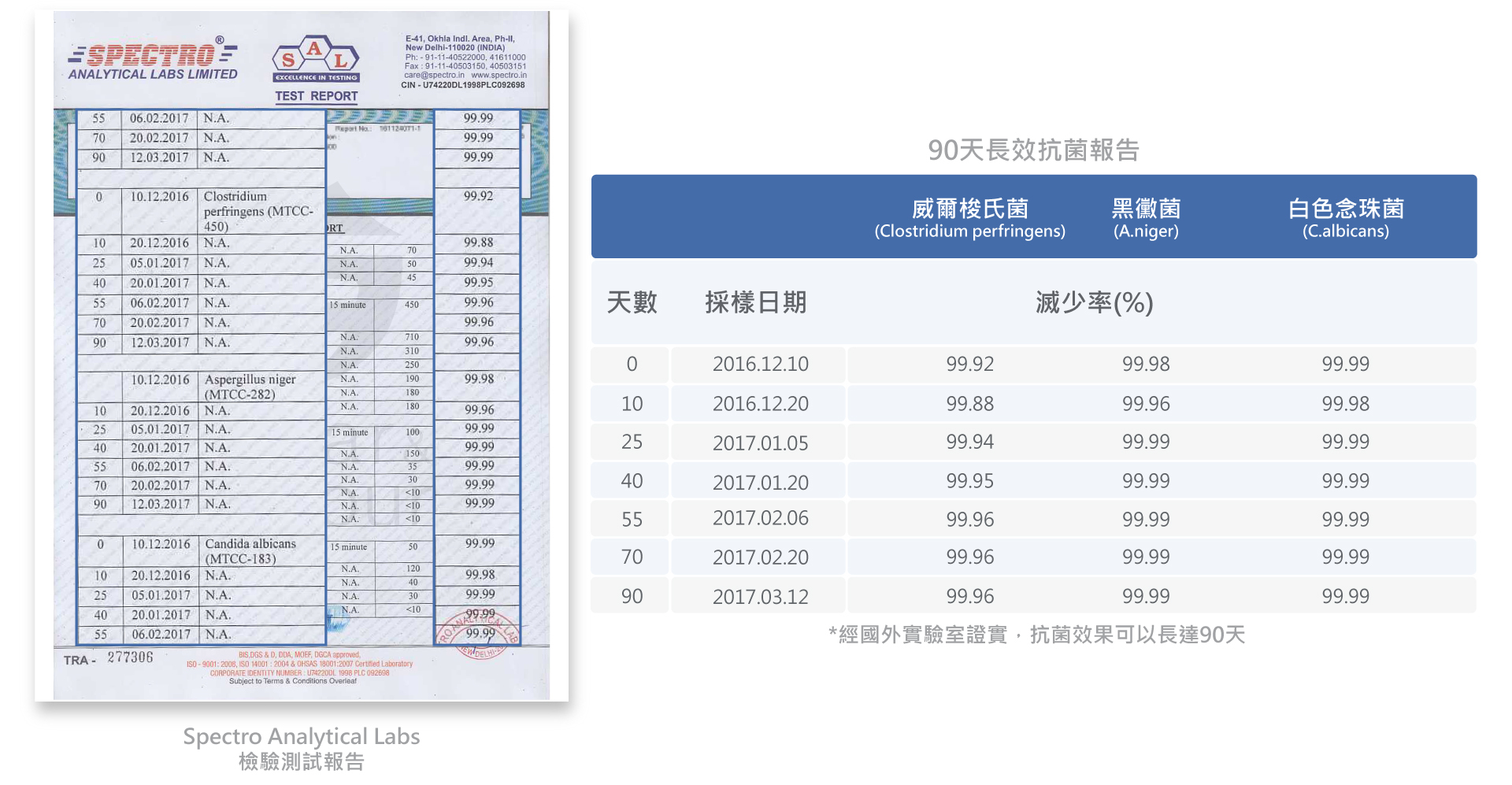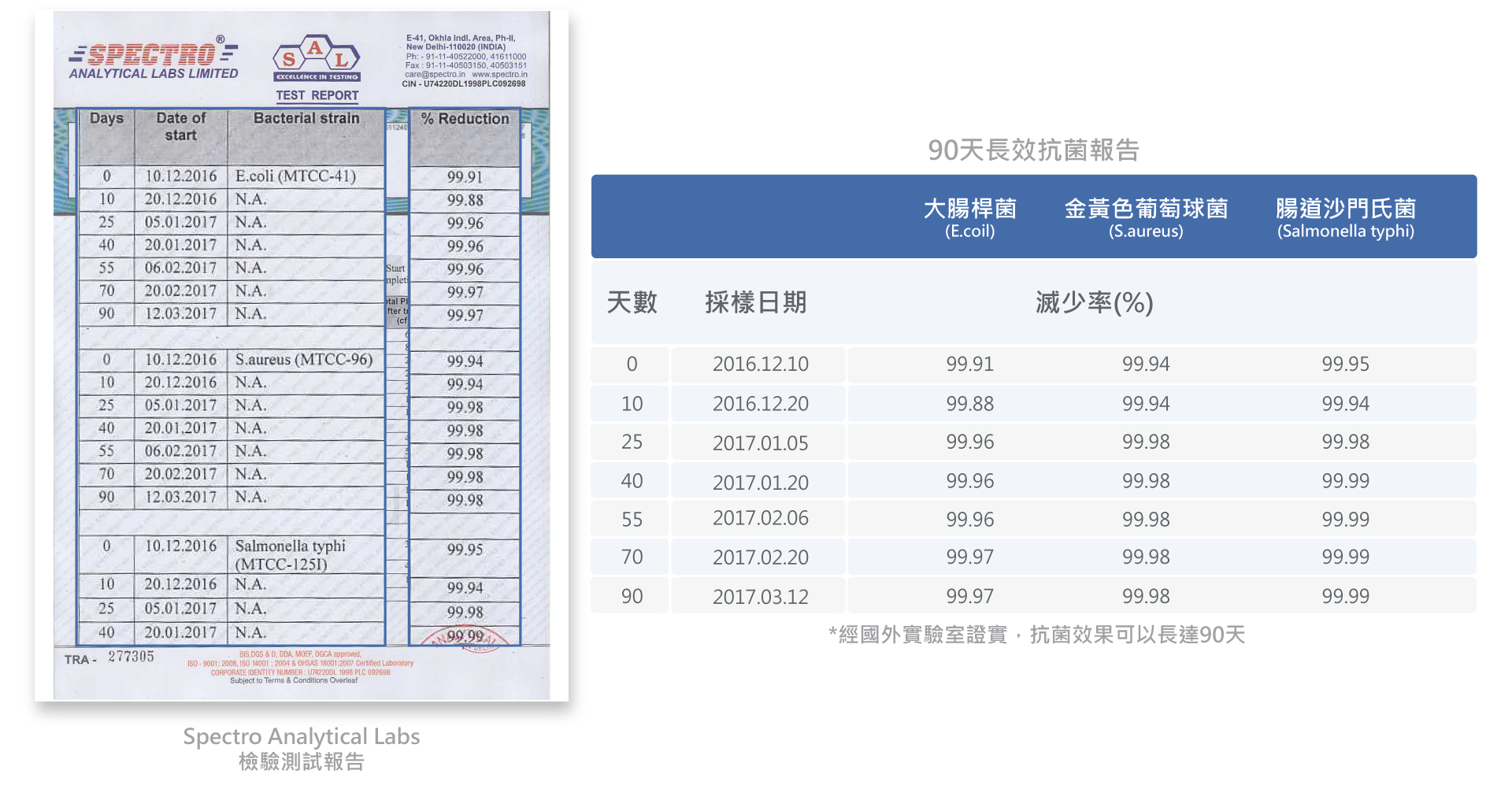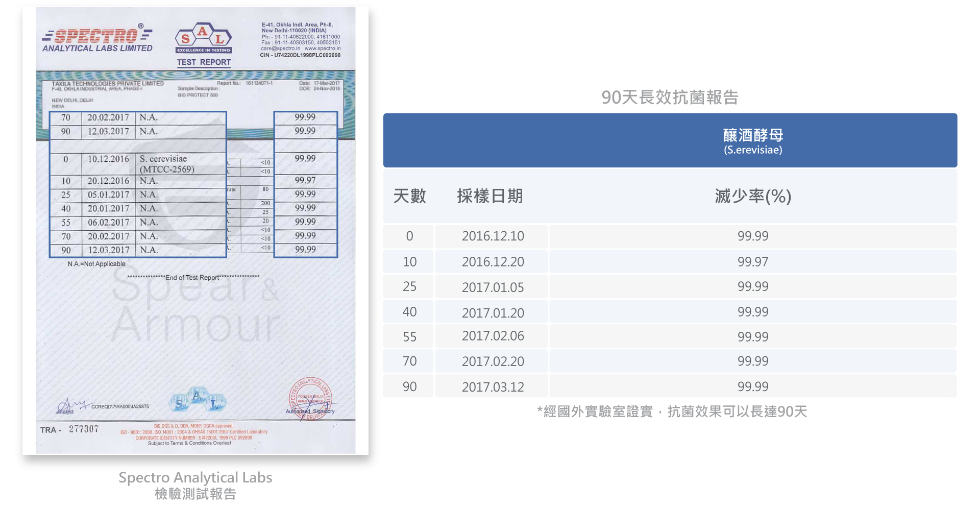 “ Spear & Armour 思必兒系列產品長效測試抗菌效果>99.9% ”