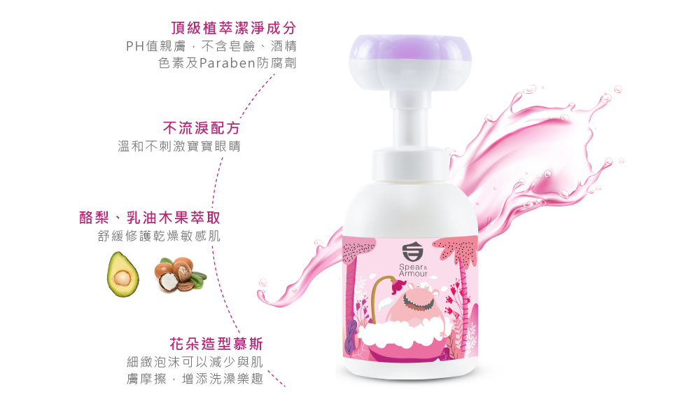 【思必兒】嬰幼兒酪梨乳油木果洗髮沐浴慕斯-甜蜜森林香氛★花朵型★