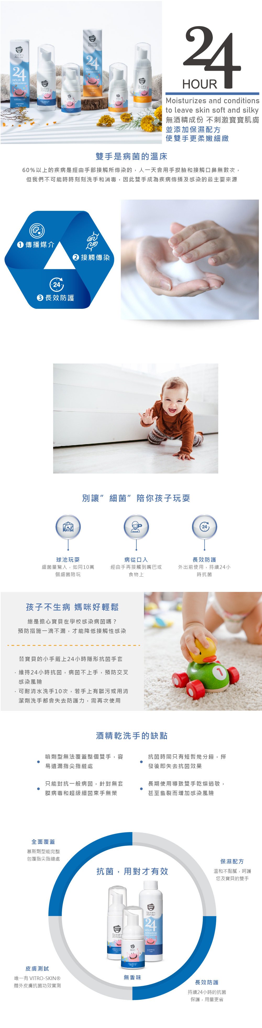 • 形成24小時的隱形防護膜,有效隔離多種病原菌