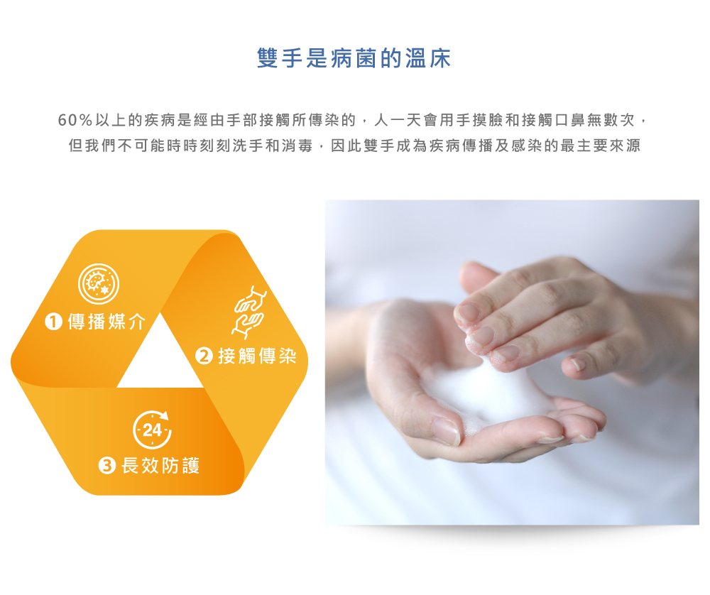 ( 產品未乾透之前請勿沖洗,以免影響長效抗菌效果)✱ 用清潔劑洗手會破壞抗菌防護膜 ✱