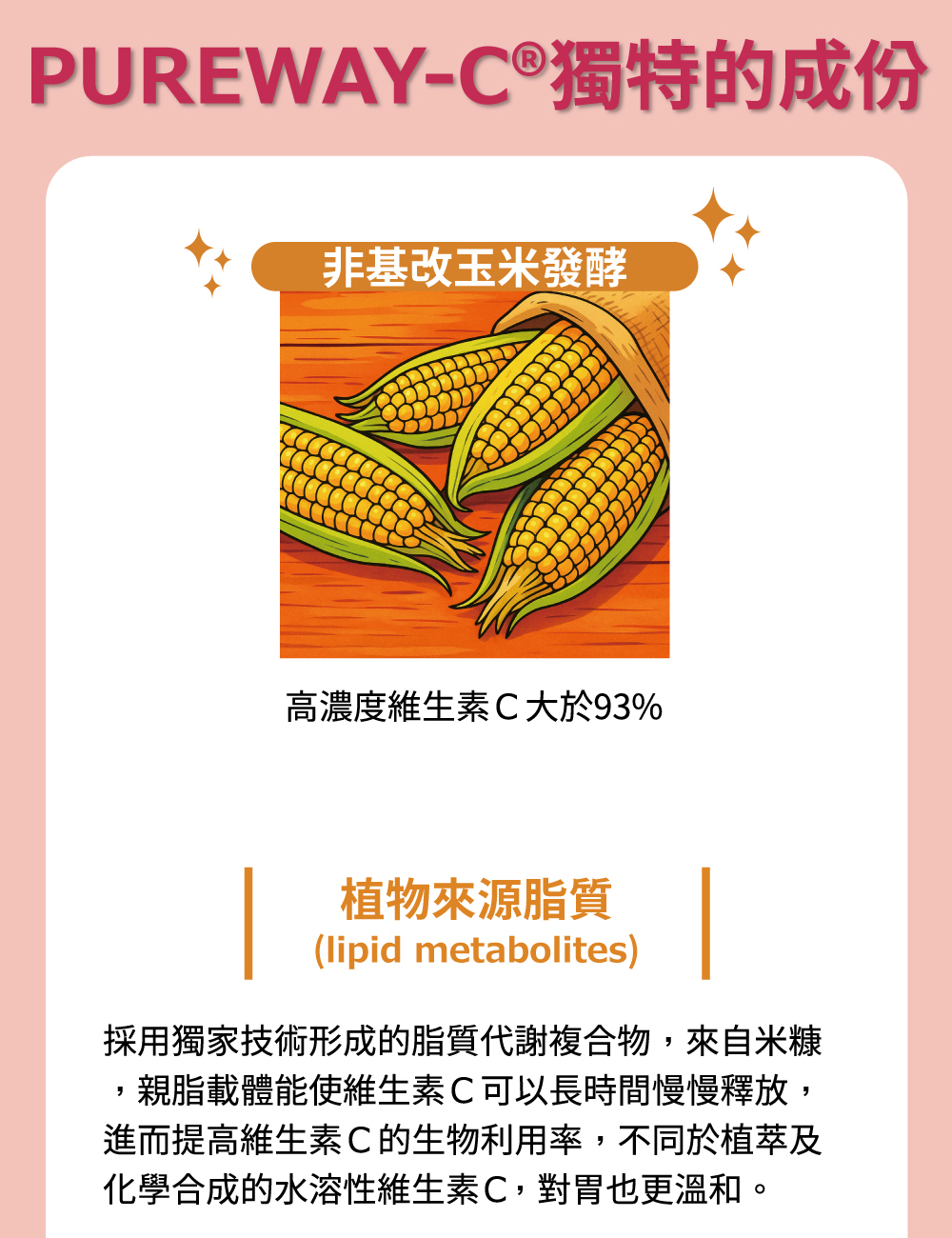 ✅嚴選美國大廠,非基改玉米發酵來源的維生素C