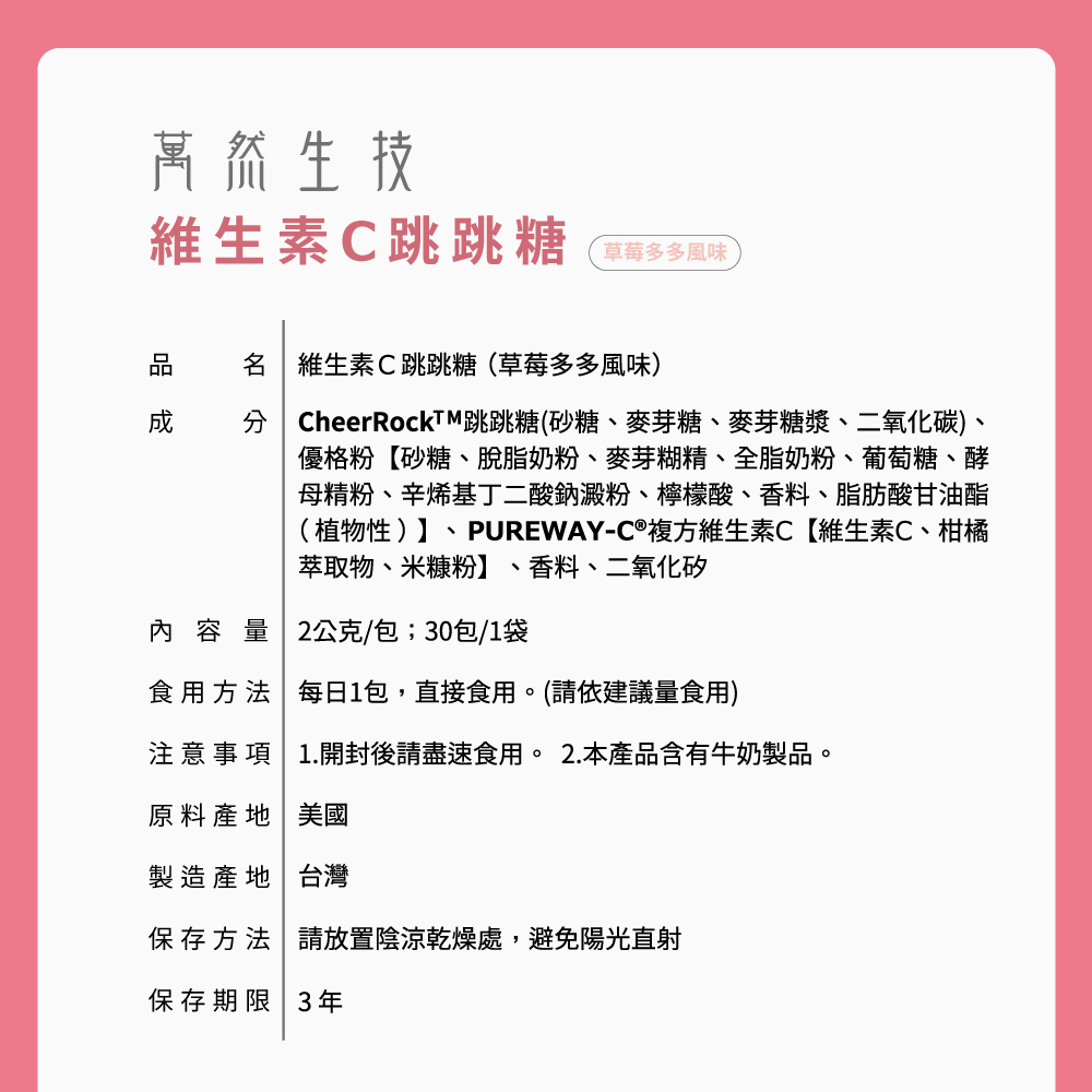【萬然生技】維生素C跳跳糖(草莓多多風味)X3袋(90包)-調整體質~滋補強身~健康維持★抗氧化作用★